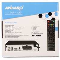Ankaro ANK DSR 4100 ist ein einfach bedienbarer Receiver zum Empfang aller freien TV– und Radiosender via Satellit, inklusive der in HDTV frei ausgestrahlten Programme in Full HD 1080p. Erleben Sie hochauflösende FULL HD TV Bilder über HDMI und eine hervorragende Tonqualität dank Koaxial (digitaler Audioausgang ) - Premium Heimkino Erlebnis pur. Durch den Anschluss einer externen Festplatte oder eines USB-Sticks wird das Gerät zu einer Multimediastation und erlaubt somit dem Zuschauer mehr Flexibilität bei der Gestaltung seines individuellen Fernsehabends. Verpassen Sie keine Sendung mehr! Mit der PVR Aufnahmefunktion lassen sich Lieblingssendungen auf einem USB Speichergerät speichern. Dank Timeshift können laufende Sendungen pausiert und zurück gespult werden. Zum Lieferumfang gehört ein lernbare Fernbedienung mit der Sie Ihr TV Gerät steuern können und eine